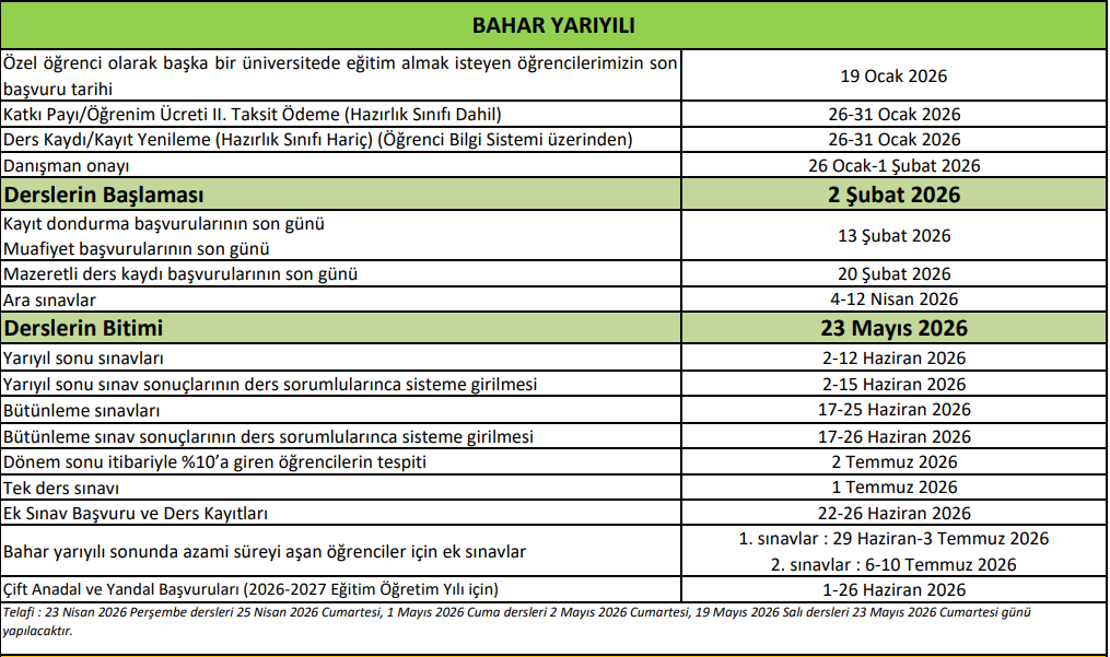 AKADEMİK TAKVİM