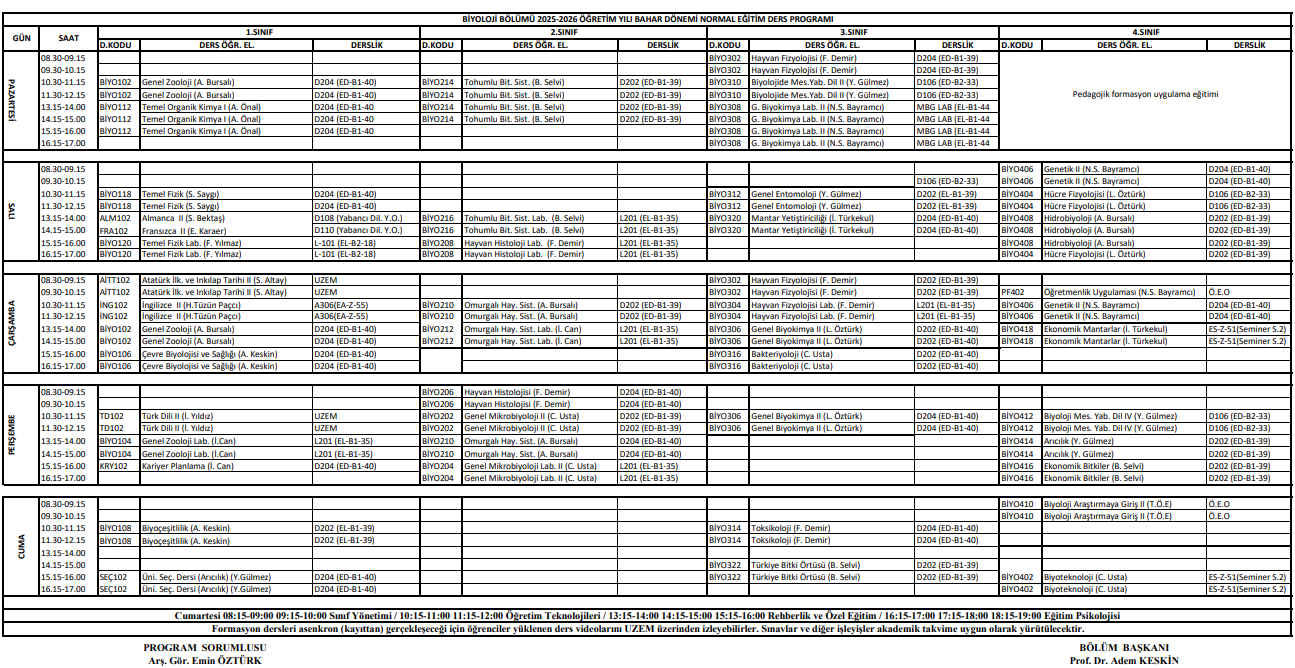 Bölümümüzün haftalık ders programları, her dönem öncesinde