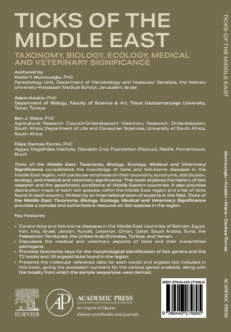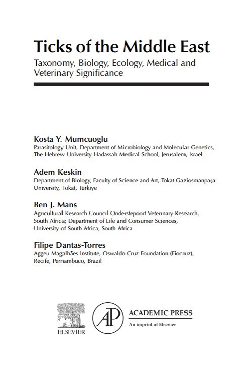 Bölümümüz öğretim üyelerinden Prof. Dr. Adem Keskin’in yazarları arasında yer aldığı “Ticks of the Middle East: Taxonomy, Biology, Ecology, Medical and Veterinary Significance” başlıklı kitap, dünyaca ünlü Elsevier-Academic Press yayınevi tarafından yayımlanmıştır.