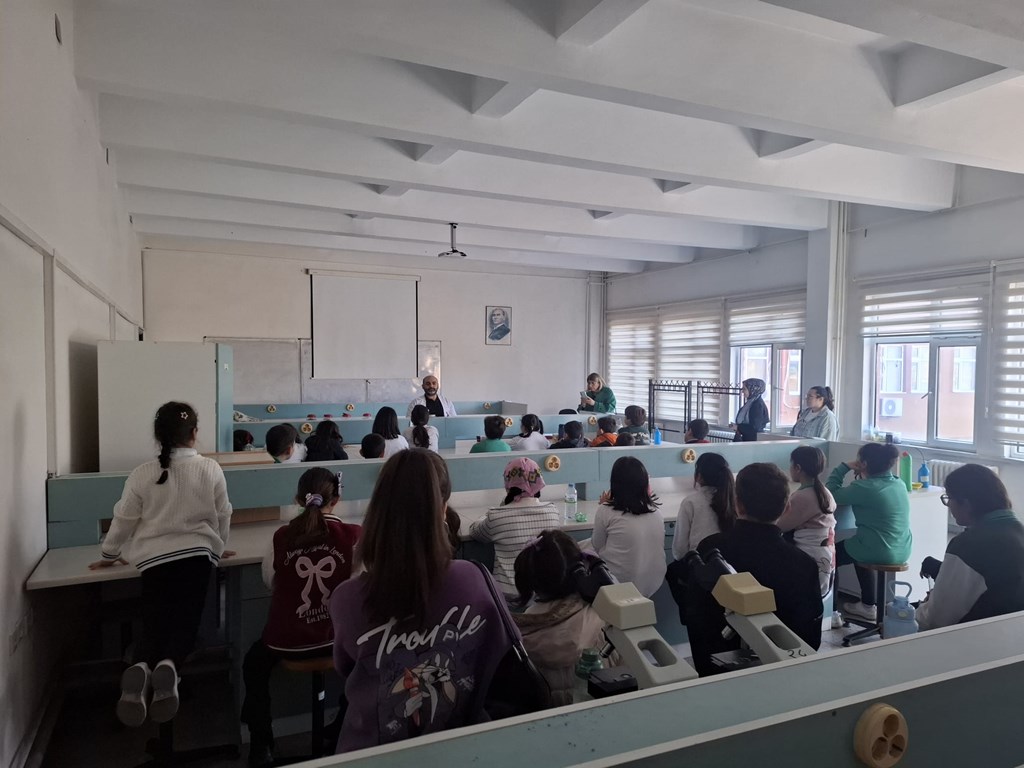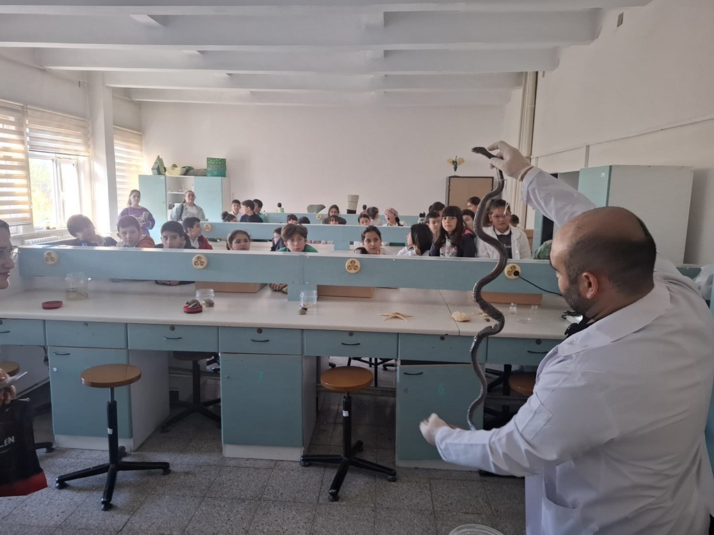 Tokat Karşıyaka İlkokulu öğrencileri, Cumhuriyetimizin 102. yılı kutlamaları kapsamında Zooloji Laboratuvarımızı ziyaret etti.Bölüm Başkanımız Prof. Dr. Adem Keskin, laboratuvarımızda bulunan omurgalı ve omurgasız hayvan örnekleri hakkında minik misafirlerimize hem eğlenceli hem de öğretici bilgiler paylaştı.Bilimle dolu bu keyifli günü bizimle geçiren öğrencilerimize teşekkür ediyor, yeni misafirlerimizi de laboratuvarımıza bekliyoruz!