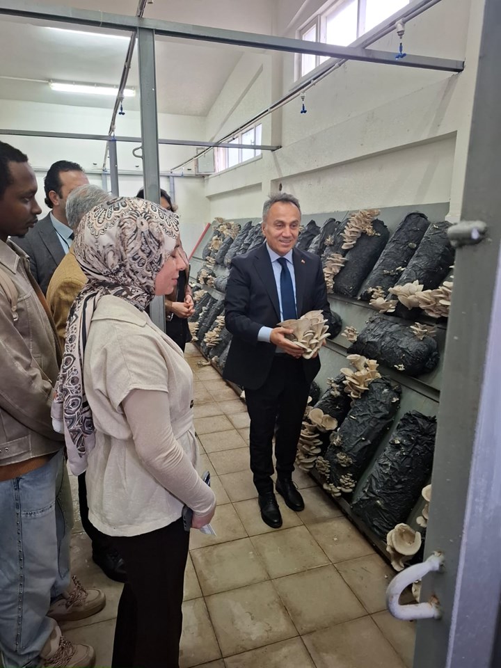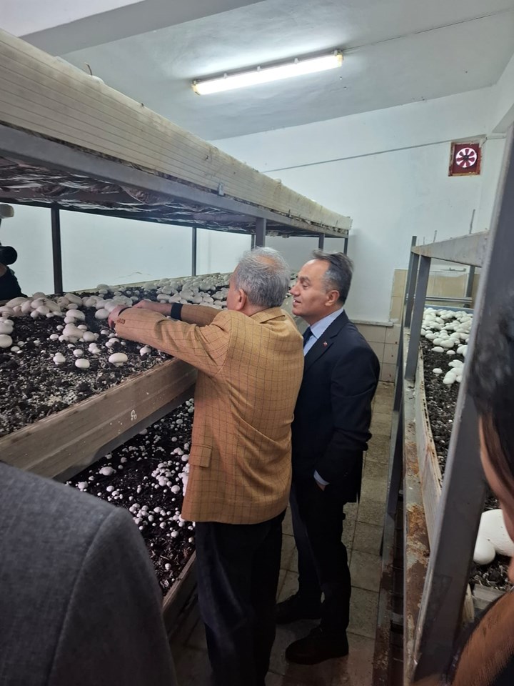 Sayın Rektörümüz Prof. Dr. Fatih YILMAZ, Fen Edebiyat Fakültesi Dekanımız Prof. Dr. Alpaslan DEMİR, Biyoloji Bölüm Başkanımız Prof. Dr. Adem KESKİN ve Mantar Üretim Tesisi Kurucumuz Prof. Dr. İbrahim TÜRKEKUL rehberliğinde mantar üretim tesisimize gerçekleştirilen ziyarette, öğrencilerimizle birlikte yürütülen çalışmalar yerinde incelenmiş; uygulamalı ve üretime dayalı eğitimin önemi vurgulanmıştır.