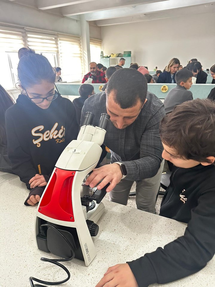 Ziyaret sırasında öğrencilerimize Bölüm Başkanımız Prof. Dr. Adem Keskin, Doç. Dr. İlyas Can ve Araş. Gör. Emin Öztürk tarafından hücre yapısı, hücre organelleri ile bitki ve hayvan hücreleri arasındaki benzerlik ve farklılıklar hakkında bilgiler verildi; mikroskop başında yapılan gözlemler sırasında öğrencilere birebir rehberlik edildi.